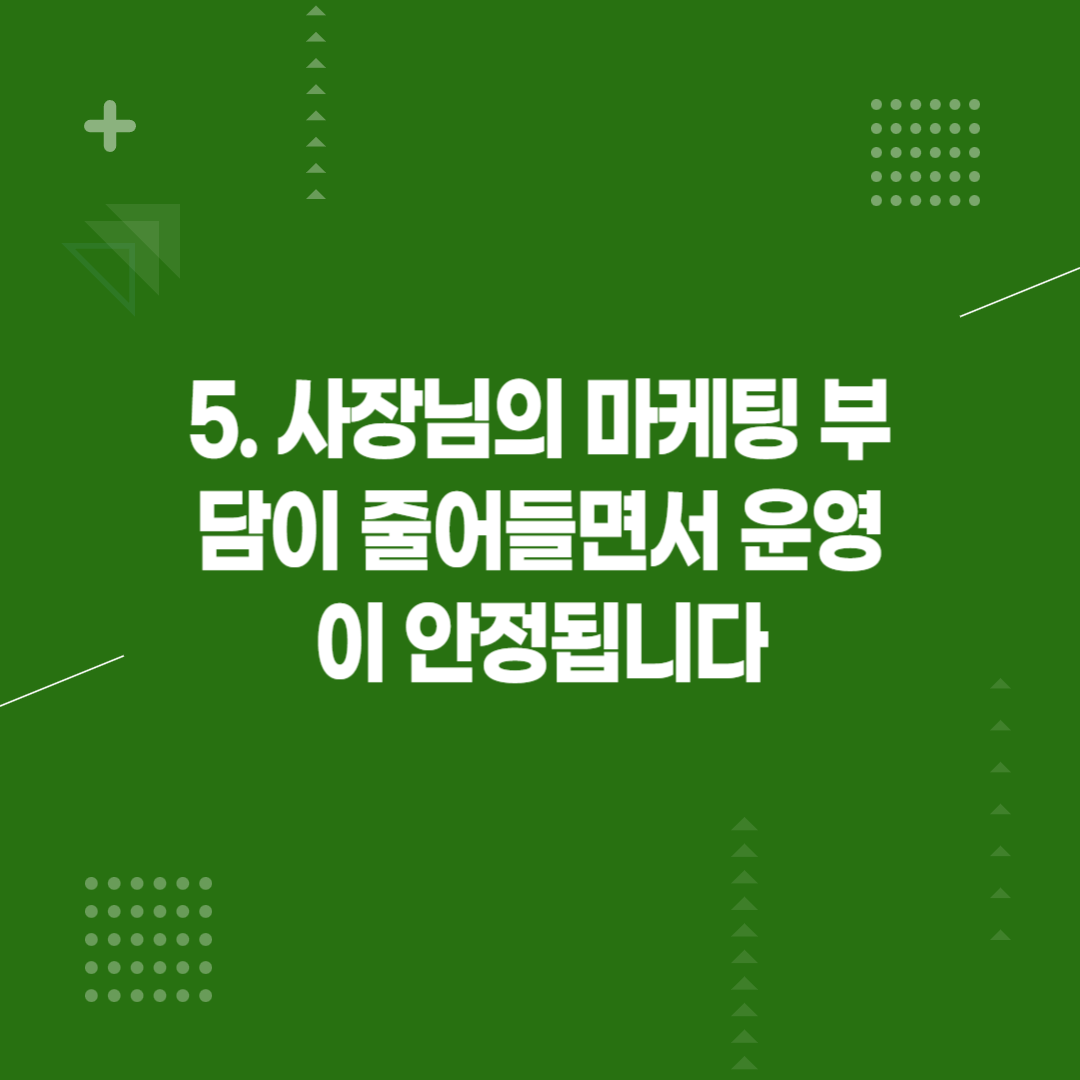 5. 사장님의 마케팅 부담이 줄어들면서 운영이 안정됩니다