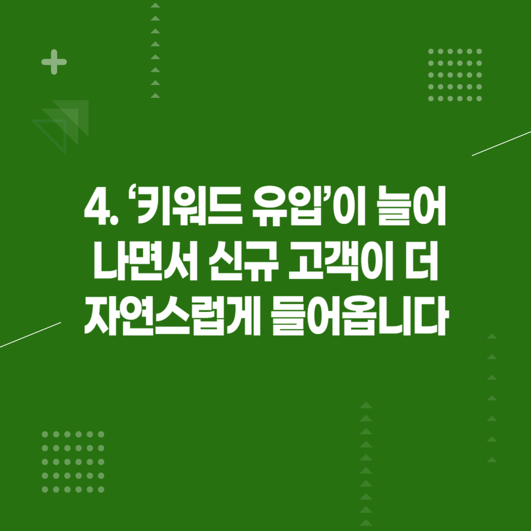 4. ‘키워드 유입’이 늘어나면서 신규 고객이 더 자연스럽게 들어옵니다