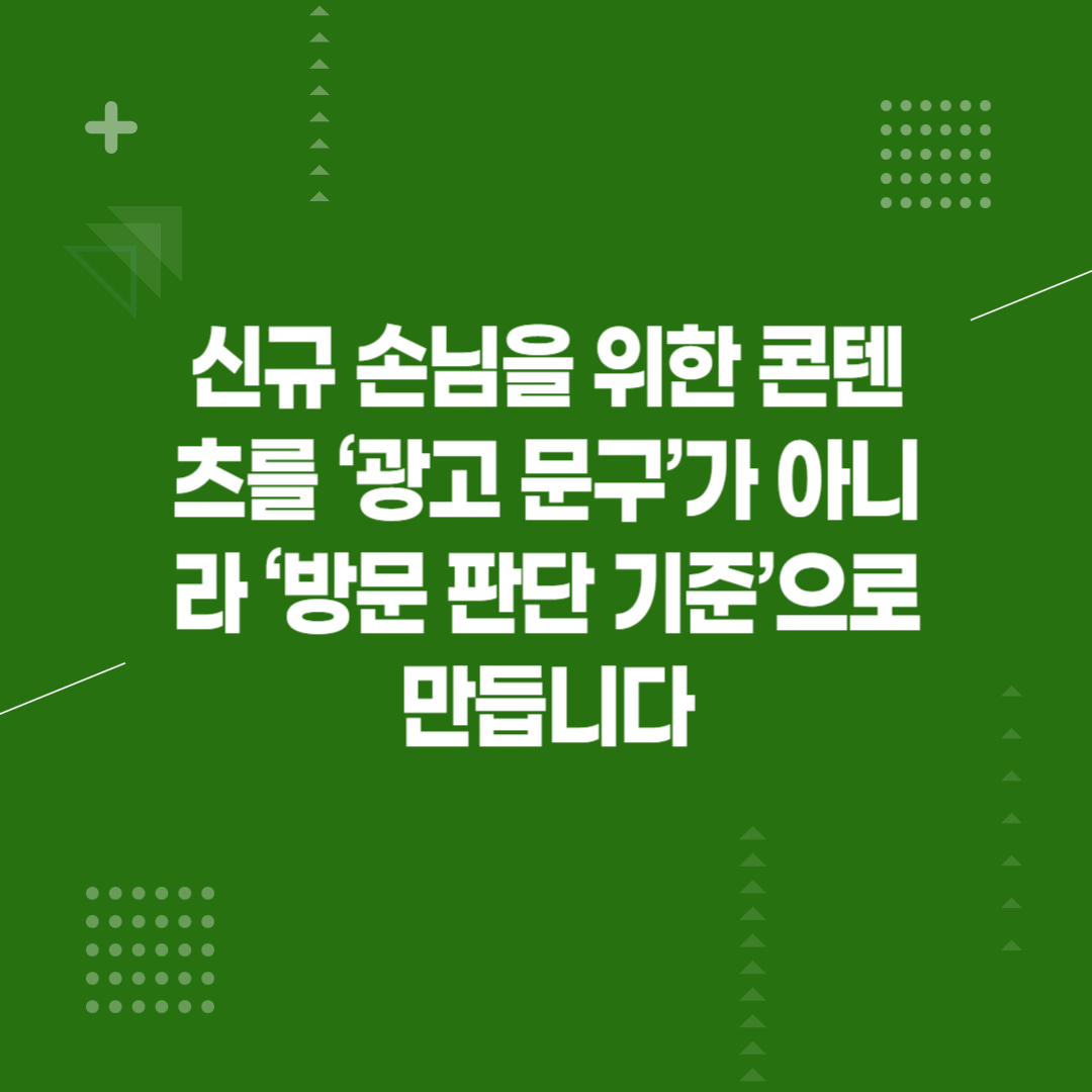 3. 신규 손님을 위한 콘텐츠를 ‘광고 문구’가 아니라 ‘방문 판단 기준’으로 만듭니다